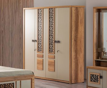 Fine crafted elegance with a wonderful feel for nature. The use of natural timber veneer enhances aesthetics where the availability of spacious shelves with hanger area and drawers will allow better arrangement.